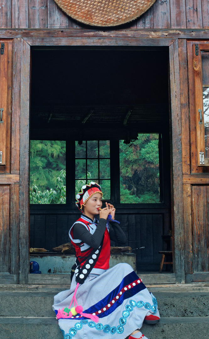 摩梭人是納西族的一個支系,多聚居在寧蒗縣永寧鄉(xiāng)的瀘沽湖畔,人口約8萬。摩梭民居就地取材,用圓木橫壘為墻,建成合院式寨樓居住,這類井干式建筑又稱木楞房,具有較好的御寒保溫性能,體現了順應自然的生態(tài)觀。摩梭人保留了母系大家庭的基本形態(tài),呈現在您眼前的是一個完整的摩梭家庭的四合院,由正房、經堂、花樓、門樓等構成,正房坐北朝南,通稱祖母房。居住一家中最年長的女性,同時也是一大家人飲食、待客、議事的核心場所...