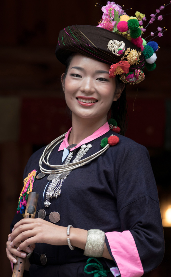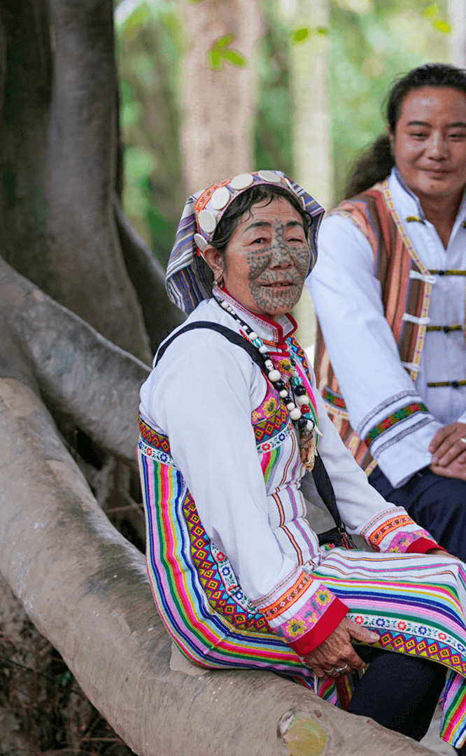德昂族人口約1.7萬,主要分布在德宏州和保山市的潞西、梁河、瑞麗、隴川、隆陽等縣區(qū)。民居多為草排覆頂竹木結構的干欄式建筑,眼前的德昂村建筑納入了能容納數十人居住的德昂大房子,氈帽頂的小房子,還有頗具浪漫色彩的大公房、小公房……還建有“龍陽塔”標志及佛教奘房、佛塔。德昂族民間普遍信奉南傳佛教,民俗活動與佛事活動關聯緊密。潑水節(jié)、開門節(jié)、關門節(jié)是重大節(jié)日。德昂族服飾色彩豐富,口頭文學特別是民歌創(chuàng)作活動...